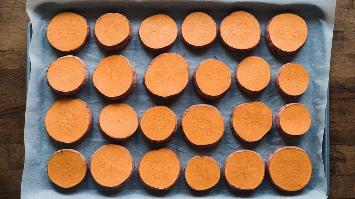 Line a baking sheet with parchment paper. Arrange the slices in a single layer without overlapping to ensure even crisping.