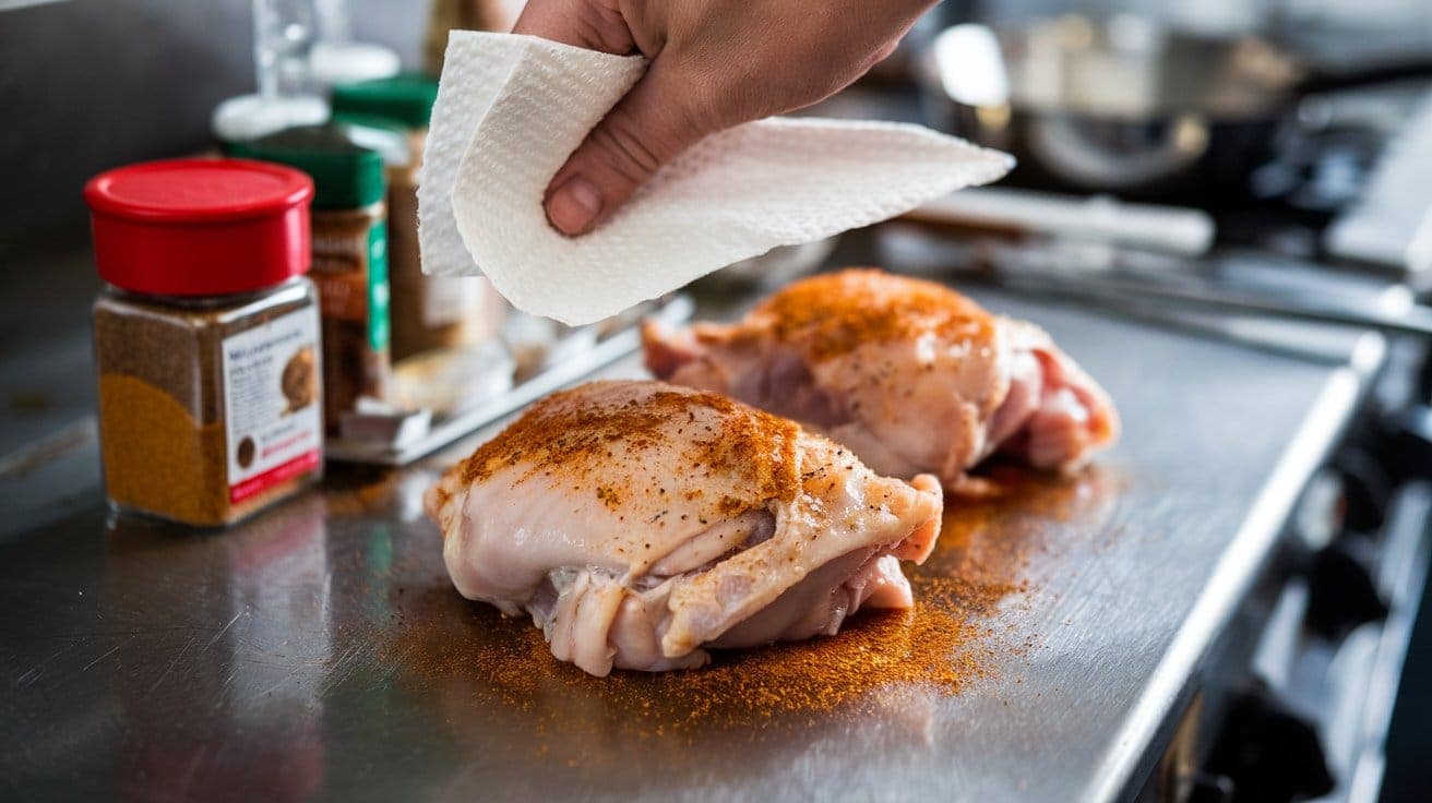 - Pat the chicken dry with paper towels. Dry skin is key to achieving that crispy, golden exterior.