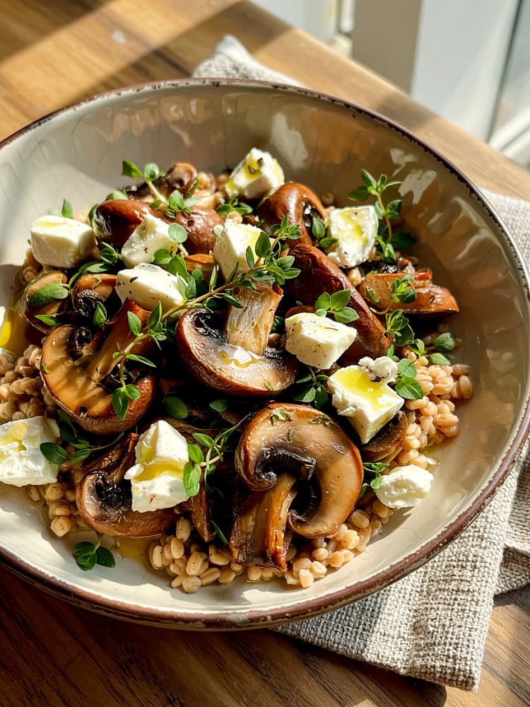 This Barley Bowl with Roasted Mushrooms & Thyme is a hearty, wholesome dish packed with earthy flavors and nourishing ingredients. Nutty pearl barley forms the base, paired with golden roasted mushrooms, caramelized onions, and a touch of fresh thyme. Perfect for a cozy dinner or meal prep, this dish balances comfort and nutrition in every bite.