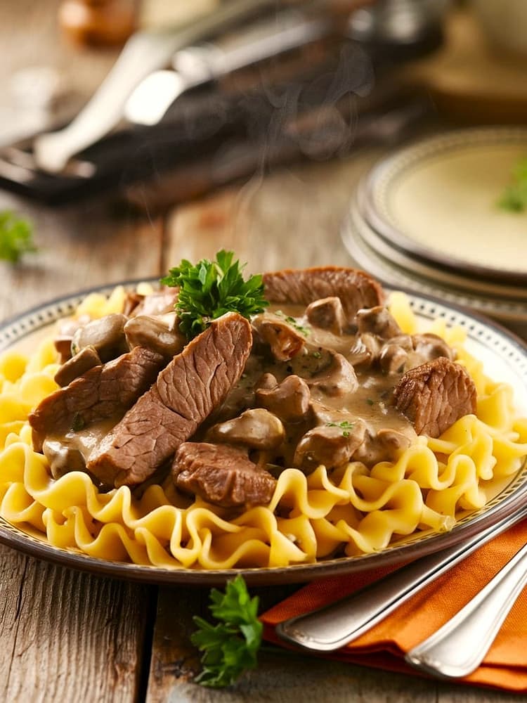 Beef Stroganoff dates back to 19th-century Russia, where it was named after the influential Stroganov family. Originally a simple dish of sautéed beef with mustard and sour cream, it evolved into the creamy, mushroom-filled version we know today. Over time, it gained popularity worldwide, with variations appearing in different cuisines. Today, it remains a beloved dish that combines rich flavors and comforting textures.