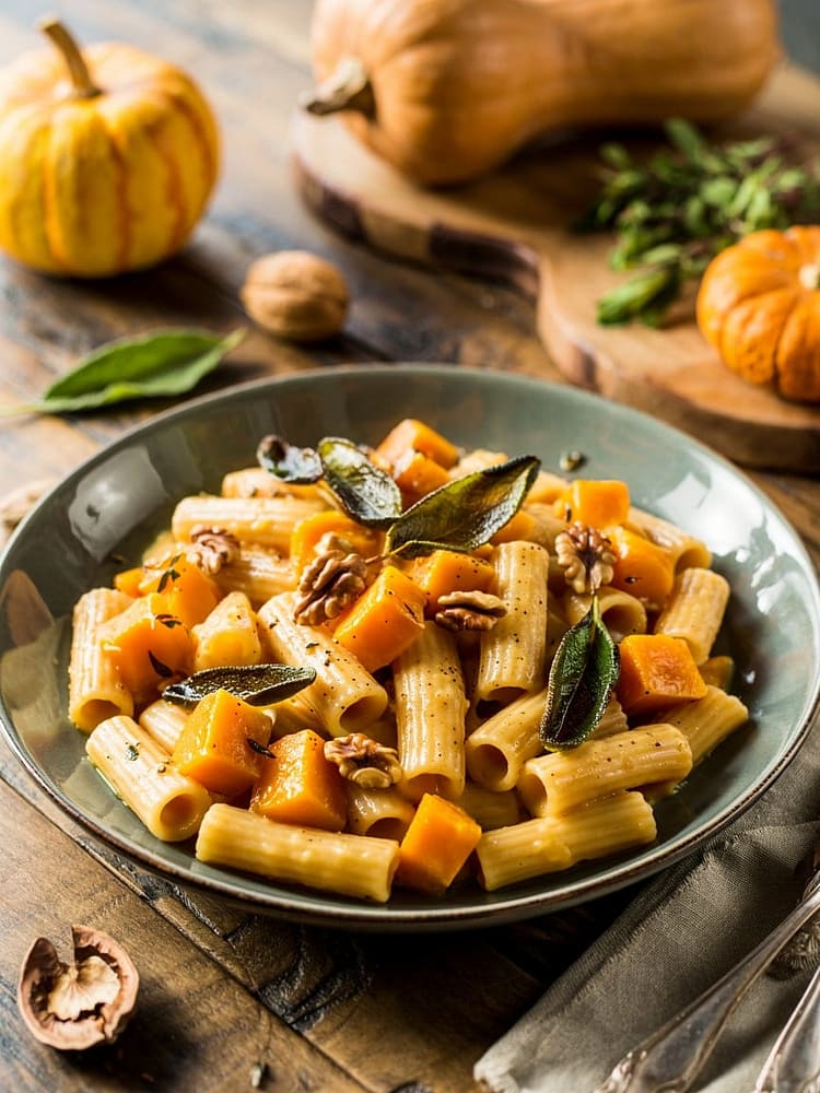 Butternut squash is low in calories but packed with vitamins A, C, and potassium. Walnuts add plant-based omega-3s and healthy fats, while whole-grain pasta can boost fiber content. Together, this makes the dish hearty, nourishing, and satisfying without being heavy.