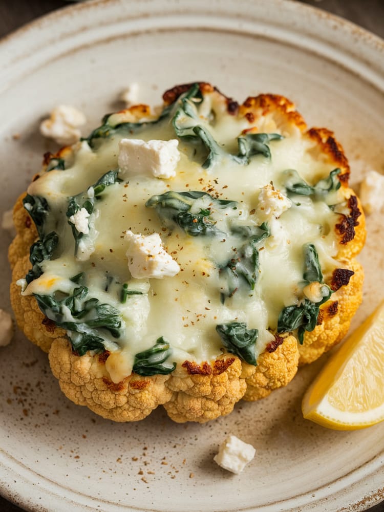 This Cauliflower Spanakopita Melt is a delicious twist on the traditional Greek spinach pie, featuring roasted cauliflower as the base. Topped with a creamy spinach and feta mixture, then finished with melty cheese, this dish combines the flavors of spanakopita with the heartiness of a satisfying melt. Perfect for a quick lunch or a light dinner, it’s a flavorful, low-carb option that’s both comforting and nutritious.