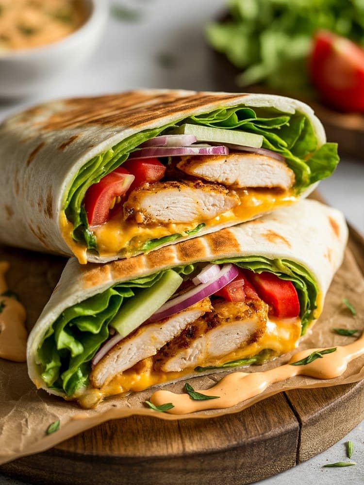 - Let the wrap sit for 2–3 minutes before slicing in half. Serve hot with a side of fries, salad, or dipping sauce.