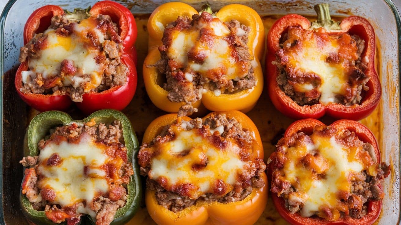 A hearty and flavorful dish featuring sweet bell peppers stuffed with seasoned ground beef, gooey melted cheese, and tender rice, perfect for a satisfying family dinner or meal prep. This recipe is simple to make and customizable with your favorite toppings.