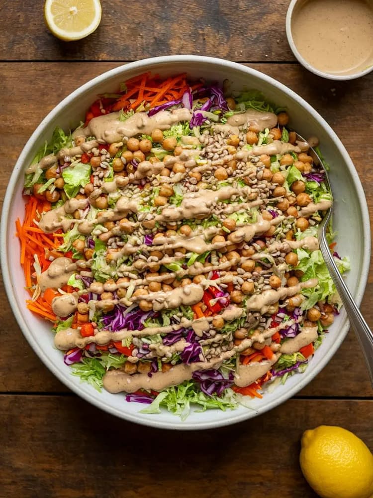 This Chickpea-Cabbage Chopped Salad is a vibrant, crunchy, and protein-packed dish perfect for a healthy meal or side. Featuring crisp cabbage, hearty chickpeas, fresh vegetables, and a zesty lemon-tahini dressing, it’s an easy-to-make, nutrient-dense salad that fits any occasion. Whether for meal prep or a quick lunch, this salad is fresh, delicious, and packed with fiber and plant-based protein.