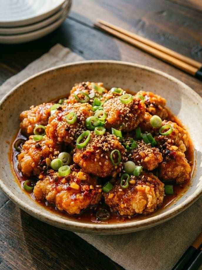 What makes Chili Crisp Honey Chicken stand out is how layered the flavors are. The chicken is seasoned and lightly coated so it cooks up golden and crisp, while the sauce combines sweetness, spice, umami, and aroma in one glossy glaze. It is comforting enough for a casual family meal, yet impressive enough to serve when guests are over.