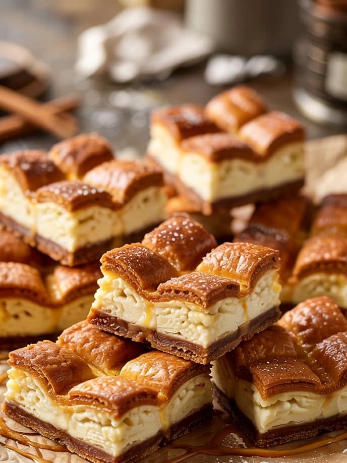 This dessert is simple enough for beginners yet impressive enough for parties, holidays, and family gatherings. Whether you’re serving them chilled straight from the fridge or slightly warmed with a drizzle of caramel, these bars are a showstopper that never fails to please.
