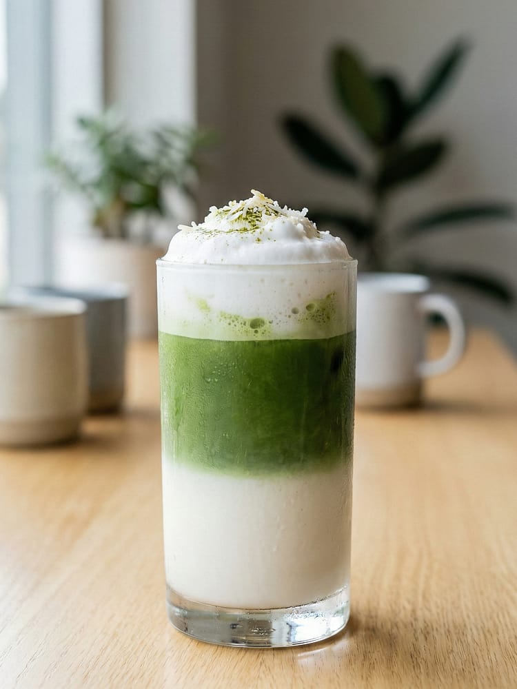 The matcha provides depth and mild bitterness, the coconut milk adds richness, and the foam creates a soft, almost dessert-like finish. It is a drink that feels indulgent without being heavy.