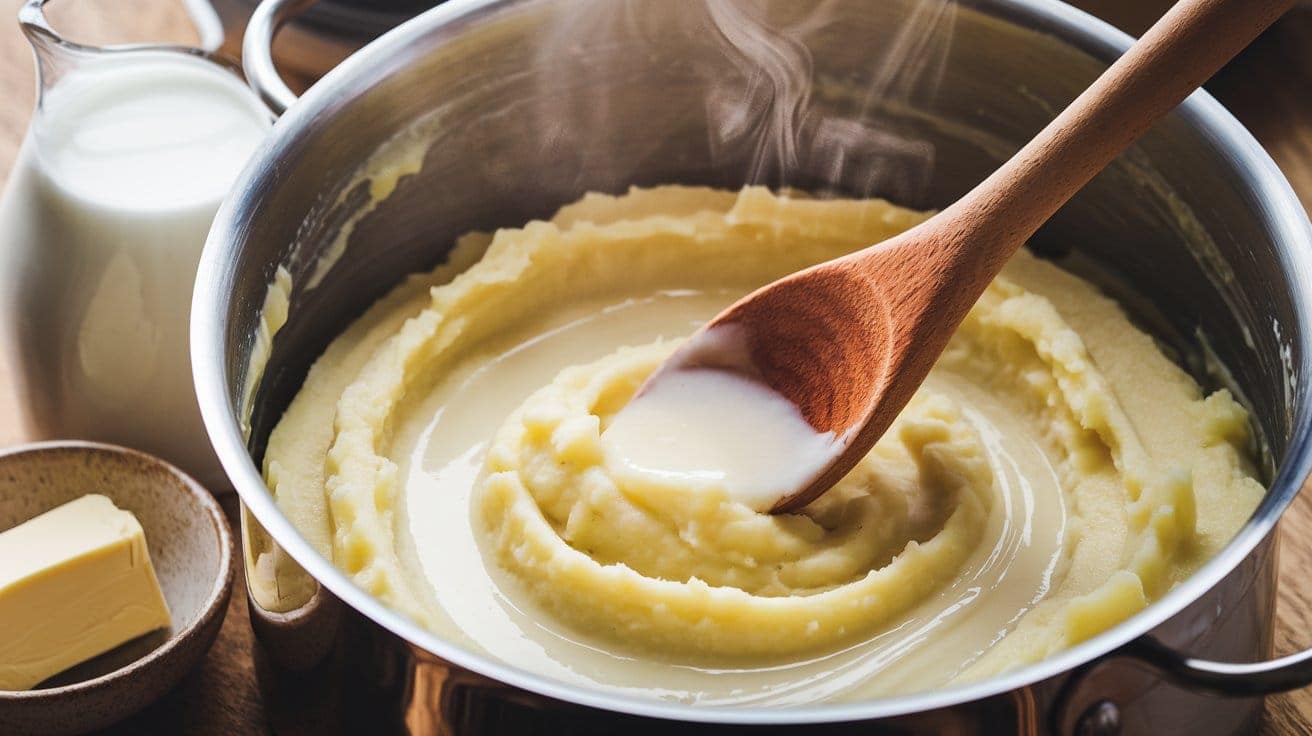- Warm the Cream and Butter: Adding warm ingredients prevents the potatoes from cooling down and helps them absorb the liquid more easily.