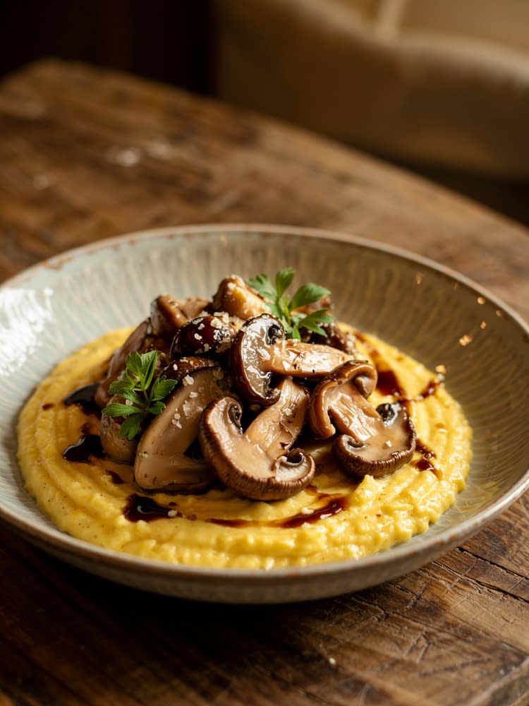 Creamy Polenta with Roasted Mushrooms & Balsamic Glaze is one of those recipes that looks and tastes gourmet but is surprisingly simple to prepare. It’s warm, comforting, and elegant — perfect for a cozy night in or an impressive dinner party centerpiece.