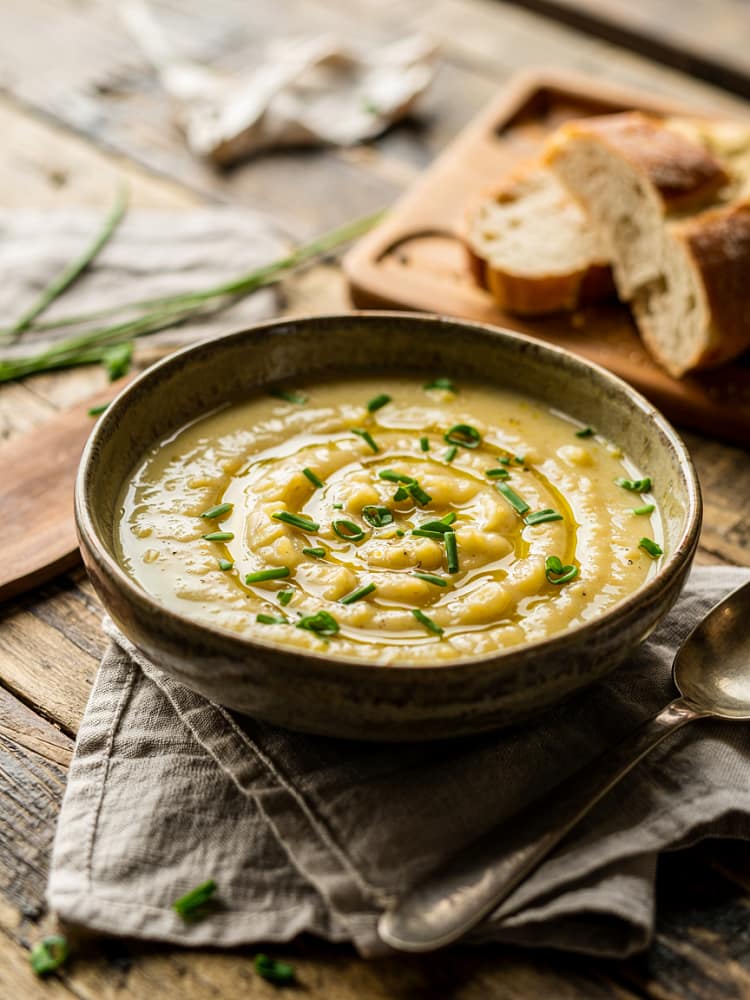 Creamy Potato Leek Soup with Olive Oil Drizzle