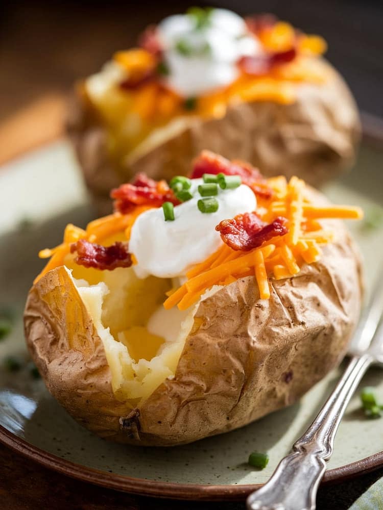 Let the potatoes rest for 5 minutes after cooking. This helps them finish steaming inside. Slice open, fluff with a fork, and add your favorite toppings.