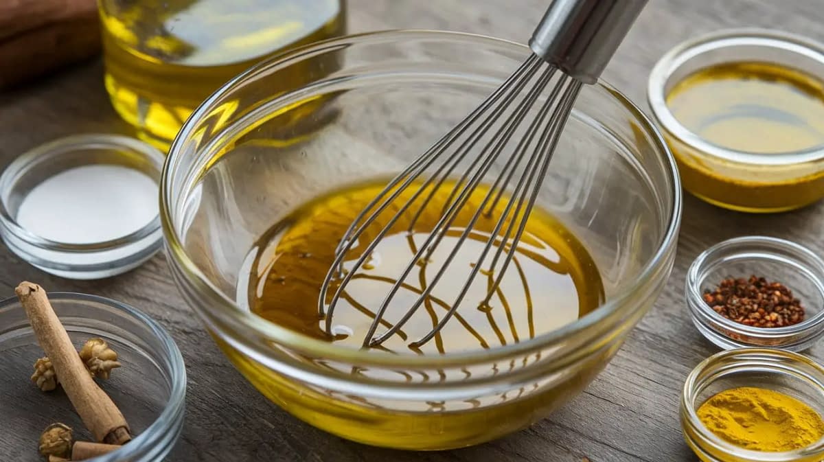 In a small mixing bowl, whisk together olive oil, apple cider vinegar, Dijon mustard, honey, minced garlic, salt, black pepper, and smoked paprika until emulsified. Adjust seasoning to taste.