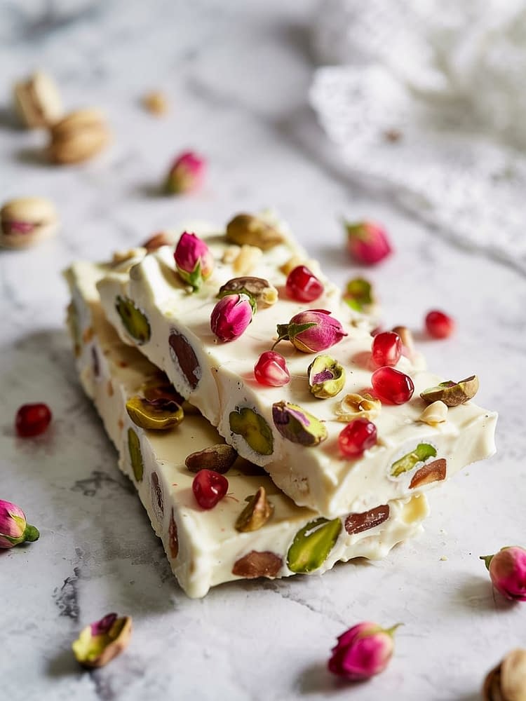 When the summer heat starts to rise, there’s nothing better than a chilled, refreshing dessert that doesn’t weigh you down. Frozen Yogurt Bark with Pistachio & Rose is not only beautiful to look at but also incredibly easy to prepare. Imagine creamy Greek yogurt subtly infused with fragrant rosewater, topped with crunchy green pistachios and delicate pink rose petals – it’s like a Persian garden in dessert form.