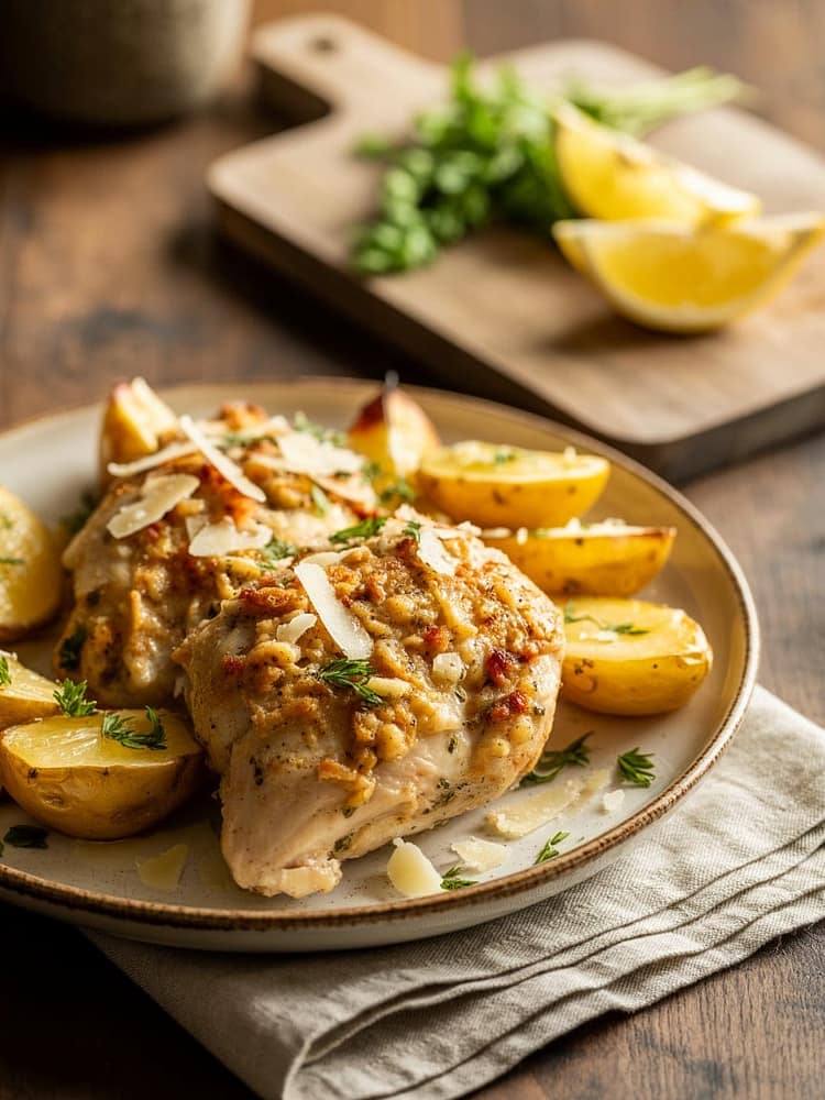 No hard-to-find ingredients here. This recipe relies on everyday staples like chicken, potatoes, garlic, butter, and parmesan—yet the result is a restaurant-worthy meal.