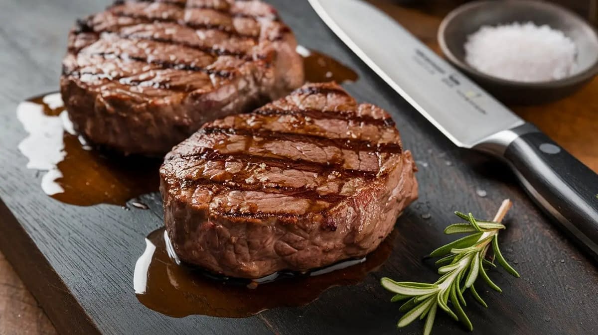 Remove the steaks from the grill and let them rest for 5 minutes before slicing. This allows the juices to redistribute, ensuring a tender, juicy steak.