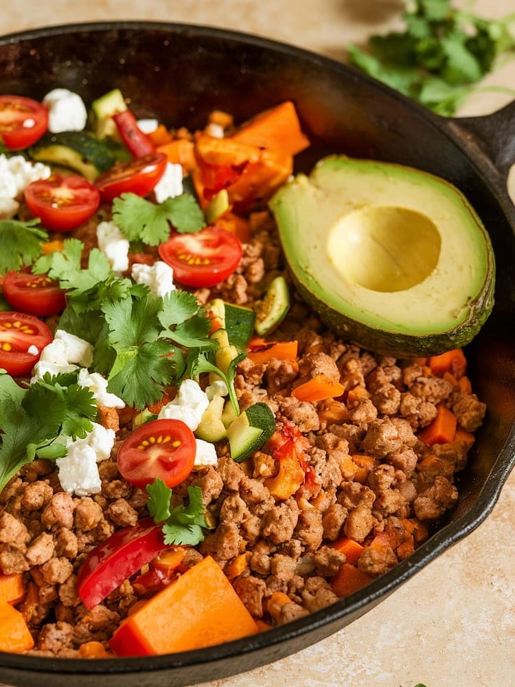 This Ground Turkey and Sweet Potato Skillet is a one-pan, protein-packed meal loaded with nutrients and flavor. Made with lean ground turkey, tender sweet potatoes, and a medley of savory spices, this easy and healthy recipe is perfect for meal prep, busy weeknights, or a quick lunch. Plus, it’s naturally gluten-free and dairy-free!