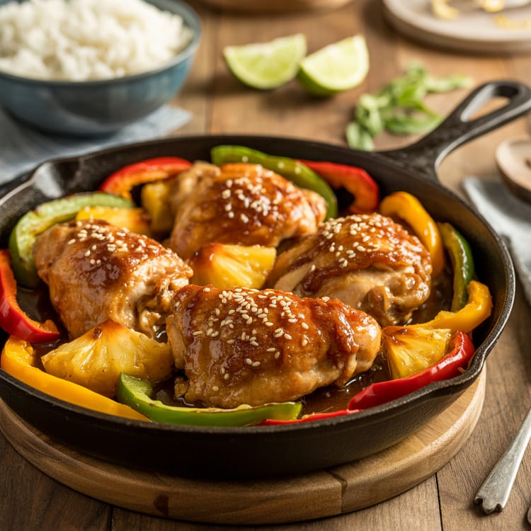 A vibrant and tropical one-pan dinner bursting with sweet and savory island flavors. This Hawaiian Chicken Sheet Pan Recipe combines tender chicken thighs, juicy pineapple, colorful bell peppers, and a homemade tangy-sweet glaze — all roasted to perfection. Easy, healthy, and perfect for busy weeknights or summer gatherings.
