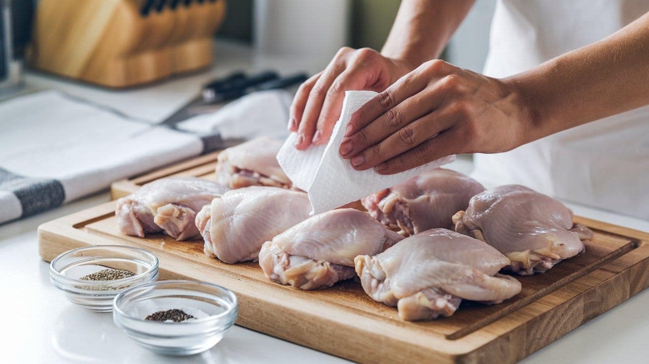 Pat the chicken thighs dry with paper towels. Season them with salt and black pepper on both sides.