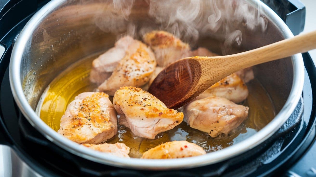 Set the Instant Pot to the sauté function. Add vegetable oil and sauté the chicken for 3-4 minutes until lightly browned. Remove the chicken and set aside.