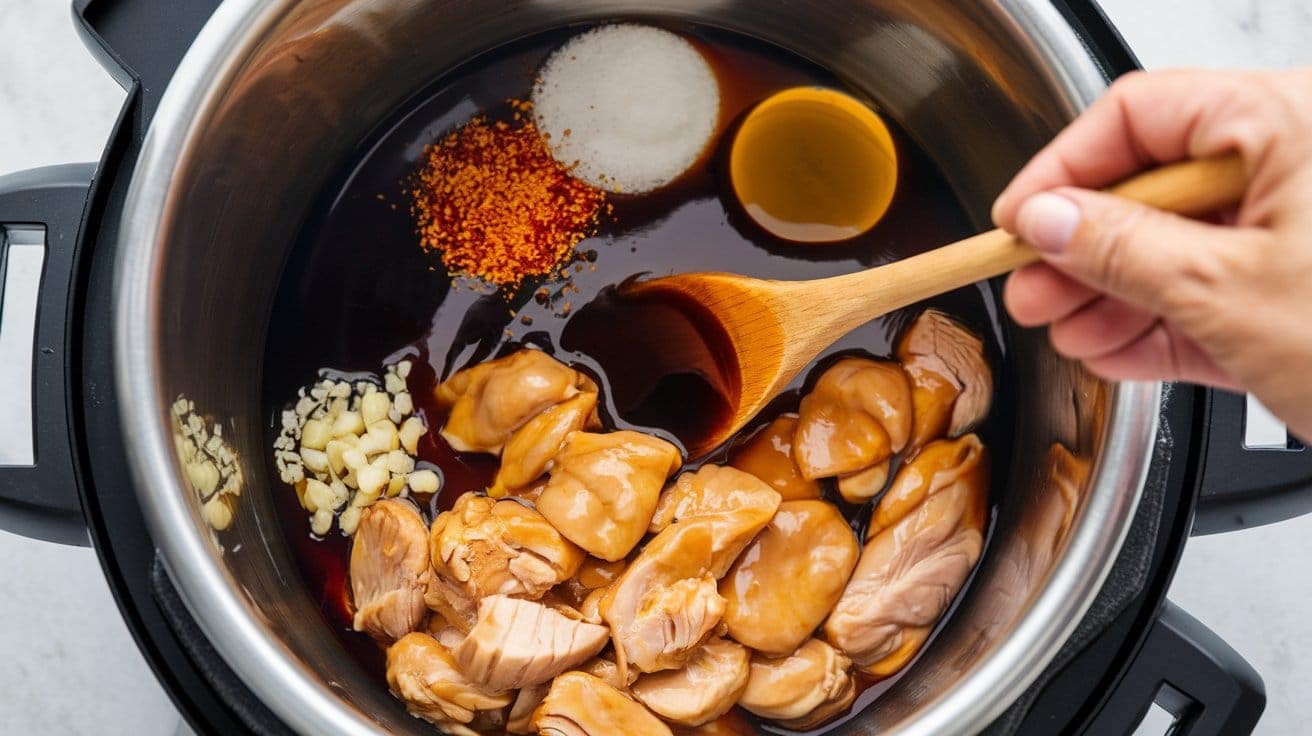 Set your Instant Pot to the sauté mode. Add a splash of sesame oil and sear the chicken in batches. This step locks in flavor, but you can skip it if you’re short on time.