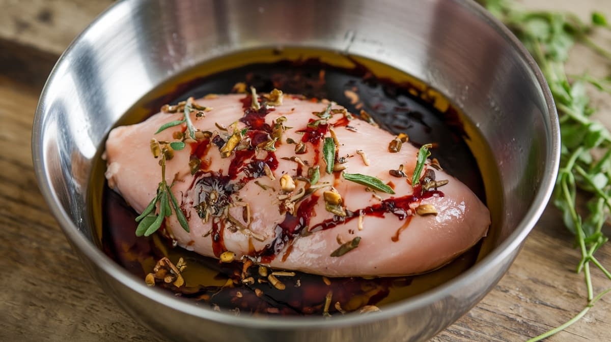 Coat the chicken breast in the marinade and let it sit for 10 minutes.
