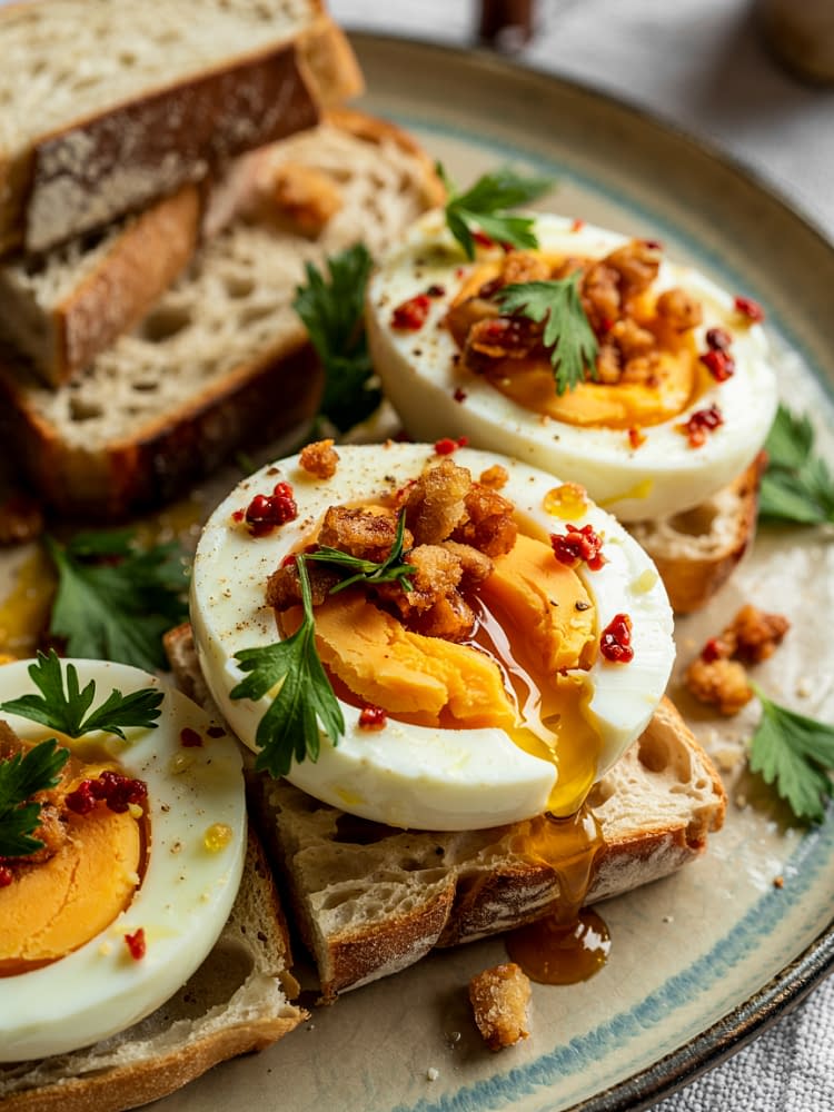 - Texture Balance: Creamy yolk, crunchy breadcrumbs, crispy chili bits.