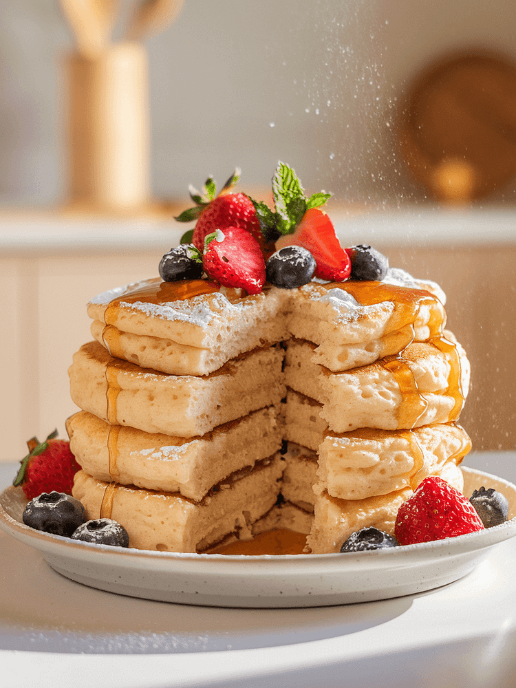 These pancakes aren’t your typical diner stack. They’re a delightful fusion of dessert and breakfast, thanks to their pillowy texture and slightly sweet flavor. Whether you’re hosting brunch or just treating yourself, these pancakes are guaranteed to impress.