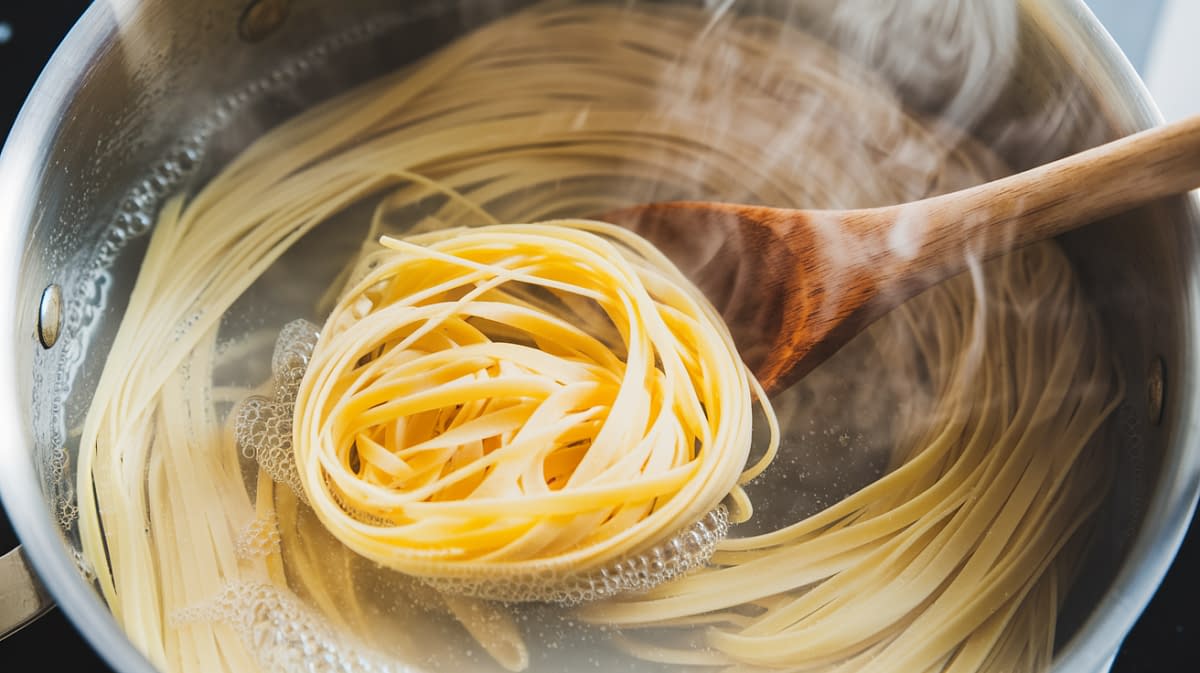 Bring a large pot of water to a rolling boil. Add 1 tbsp salt to enhance the pasta’s flavor.