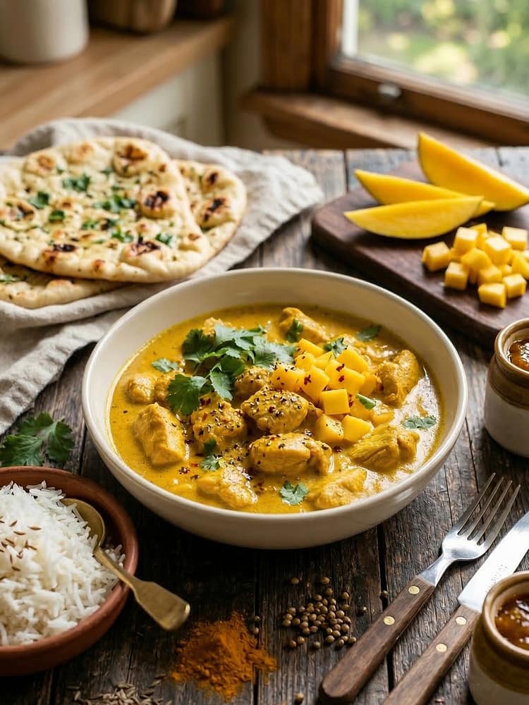 This dish is especially popular in regions where mangoes are abundant. South Asian and Southeast Asian cuisines often use fruit in savory dishes, and mango is one of the most beloved ingredients. When combined with curry spices like turmeric, cumin, coriander, and garam masala, mango transforms into a luxurious sauce that feels both comforting and exciting.