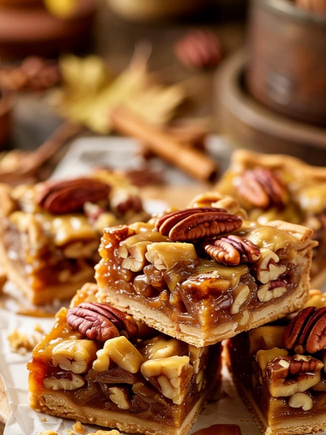 ew desserts embody the cozy essence of fall quite like Maple Pecan Pie Bars. Imagine everything you love about a traditional pecan pie — the buttery crust, the nutty caramelized filling, the warm maple aroma — reimagined into neat, easy-to-serve bars that make sharing effortless.