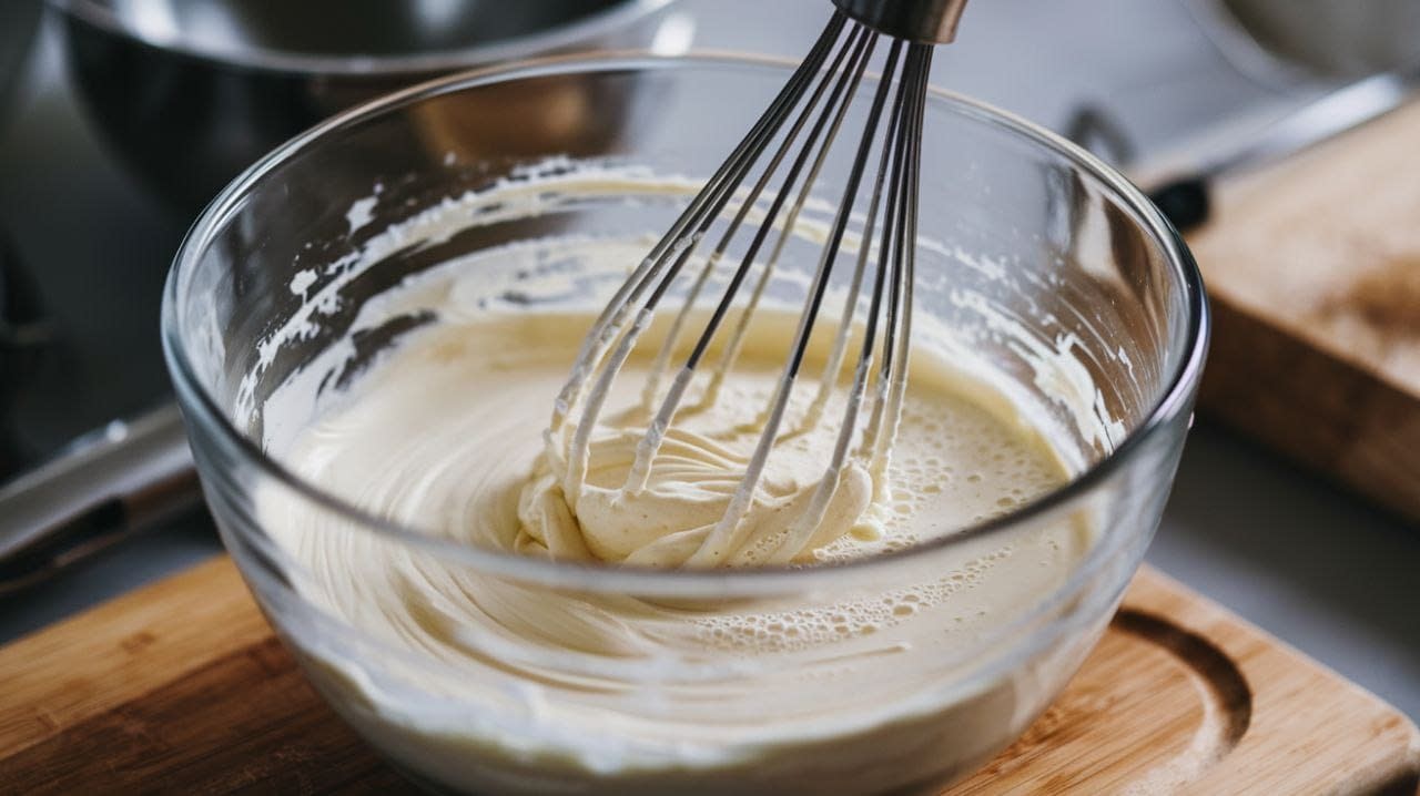 - In a mixing bowl, whisk mascarpone, heavy cream, and sweetened condensed milk until smooth.