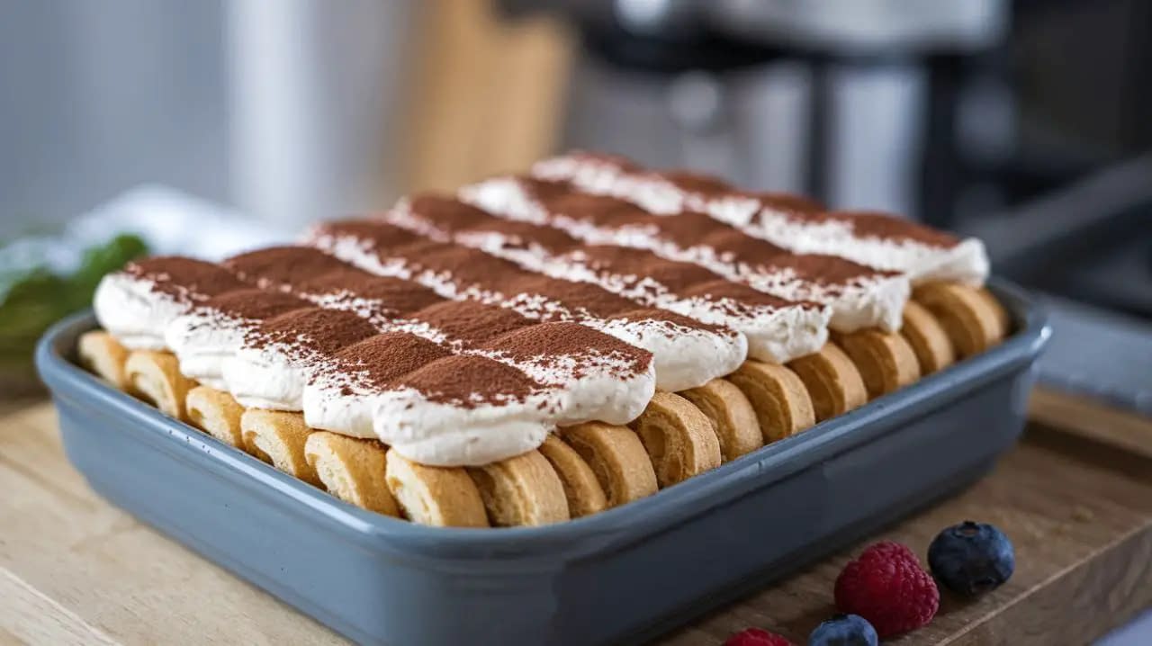 - Arrange a layer of soaked ladyfingers in a rectangular dish (8×8-inch or similar).