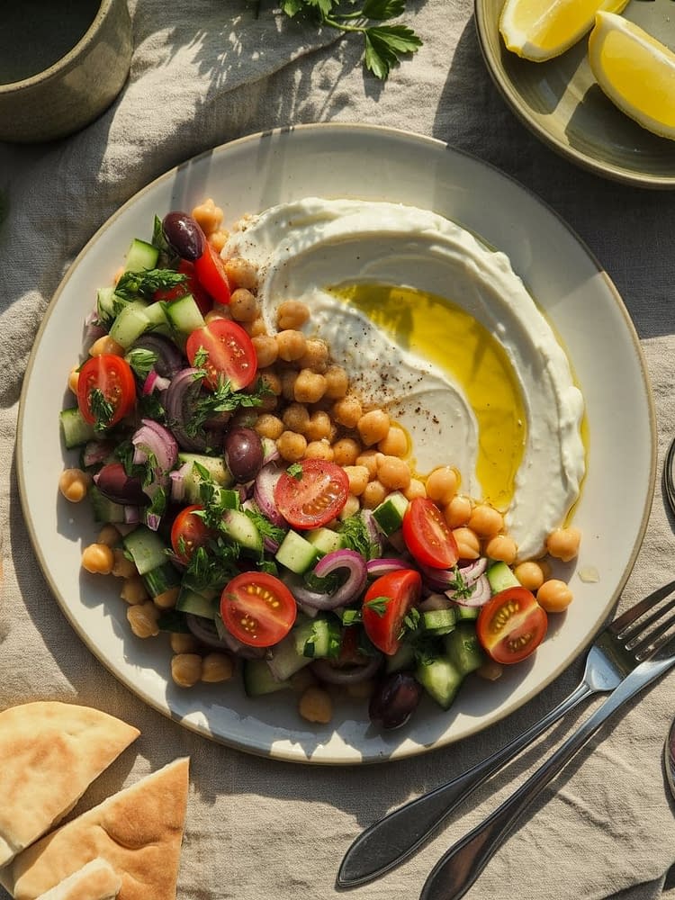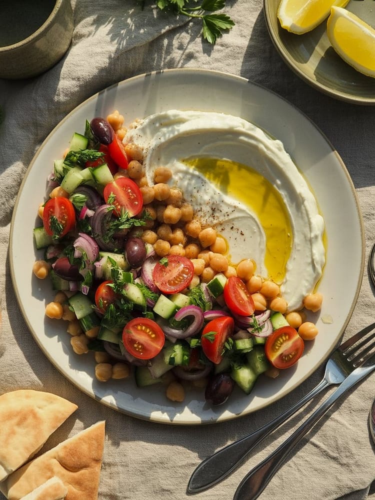 This vibrant Mediterranean Chickpea Salad with Whipped Feta is a refreshing, nutrient-packed dish loaded with crisp veggies, protein-rich chickpeas, and a creamy whipped feta spread. Perfect for summer lunches, light dinners, or meal prep, this salad bursts with tangy, herby flavors and Mediterranean goodness in every bite.