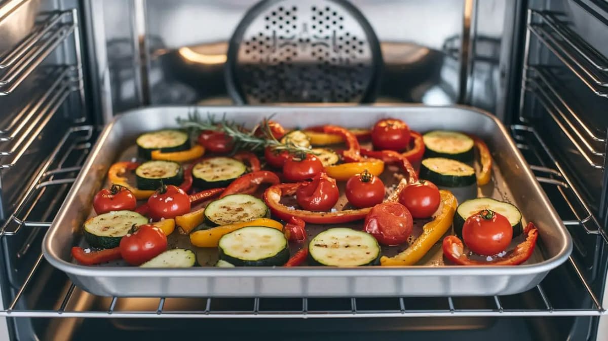 Preheat the oven to 180°C. Spread diced zucchini, bell pepper, and cherry tomatoes on a baking sheet. Drizzle with olive oil, sprinkle with smoked paprika, oregano, salt, and pepper. Toss to coat evenly. Roast for 20-25 minutes, stirring halfway through.