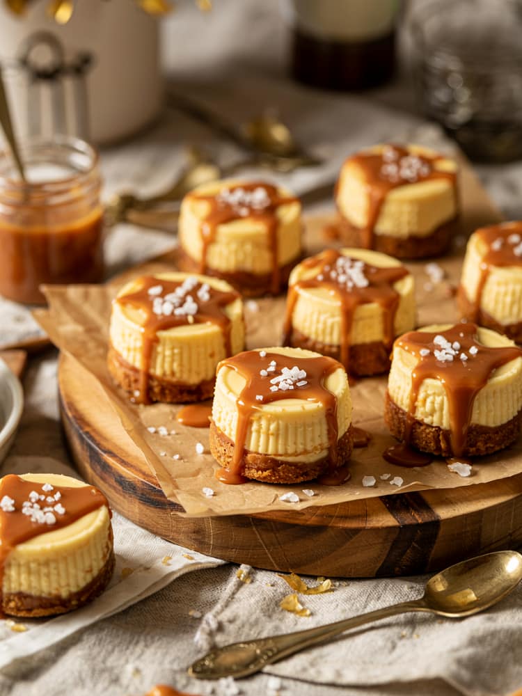 - Make-Ahead: Prepare the cheesecakes 1–2 days in advance, then drizzle with caramel just before serving.