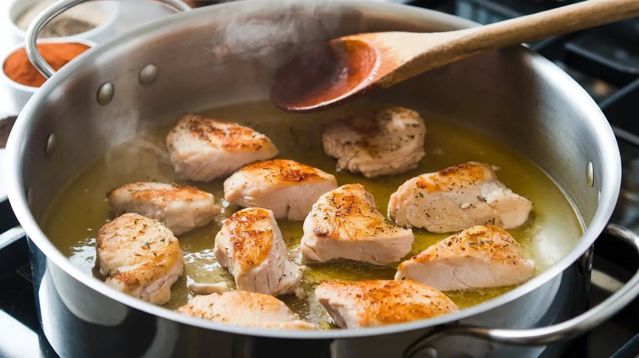 Return the cooked chicken to the pot and stir to coat it in the sauce. Simmer for an additional 2–3 minutes.