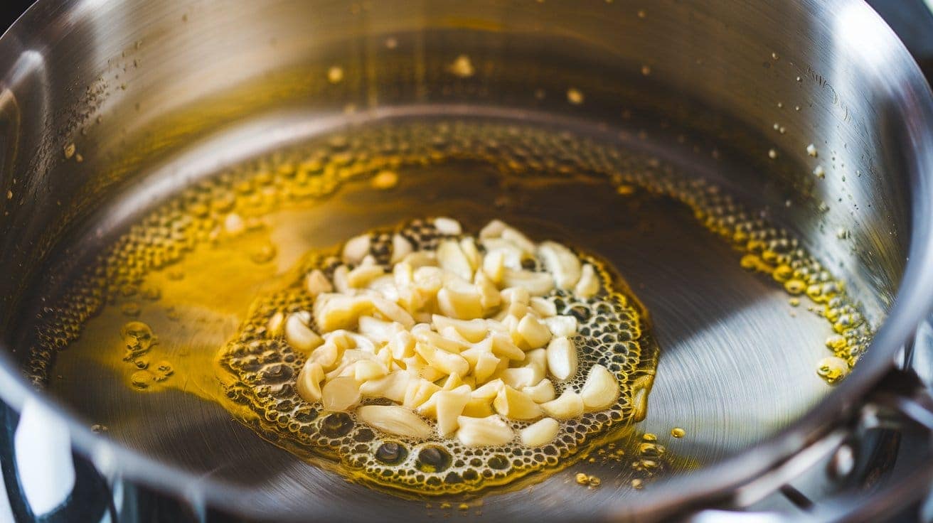 In the same pot, add minced garlic and sauté for 1–2 minutes until fragrant. Ensure not to burn the garlic.
