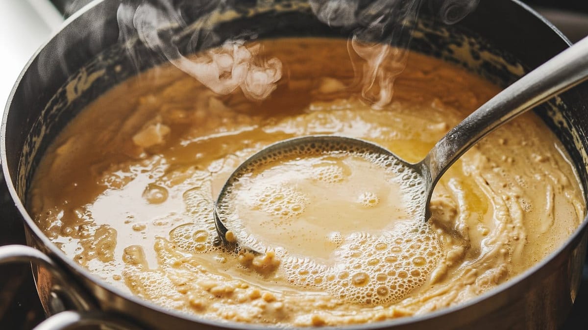 Add chicken broth and heavy cream to the pot. Bring it to a simmer, stirring occasionally to combine the flavors.