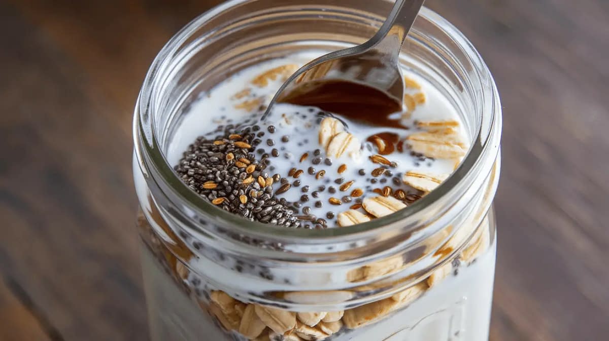 Cover the bowl or seal the mason jar tightly with a lid. Place it in the refrigerator overnight (or for at least 6 hours) to allow the oats and seeds to absorb the liquid and soften.