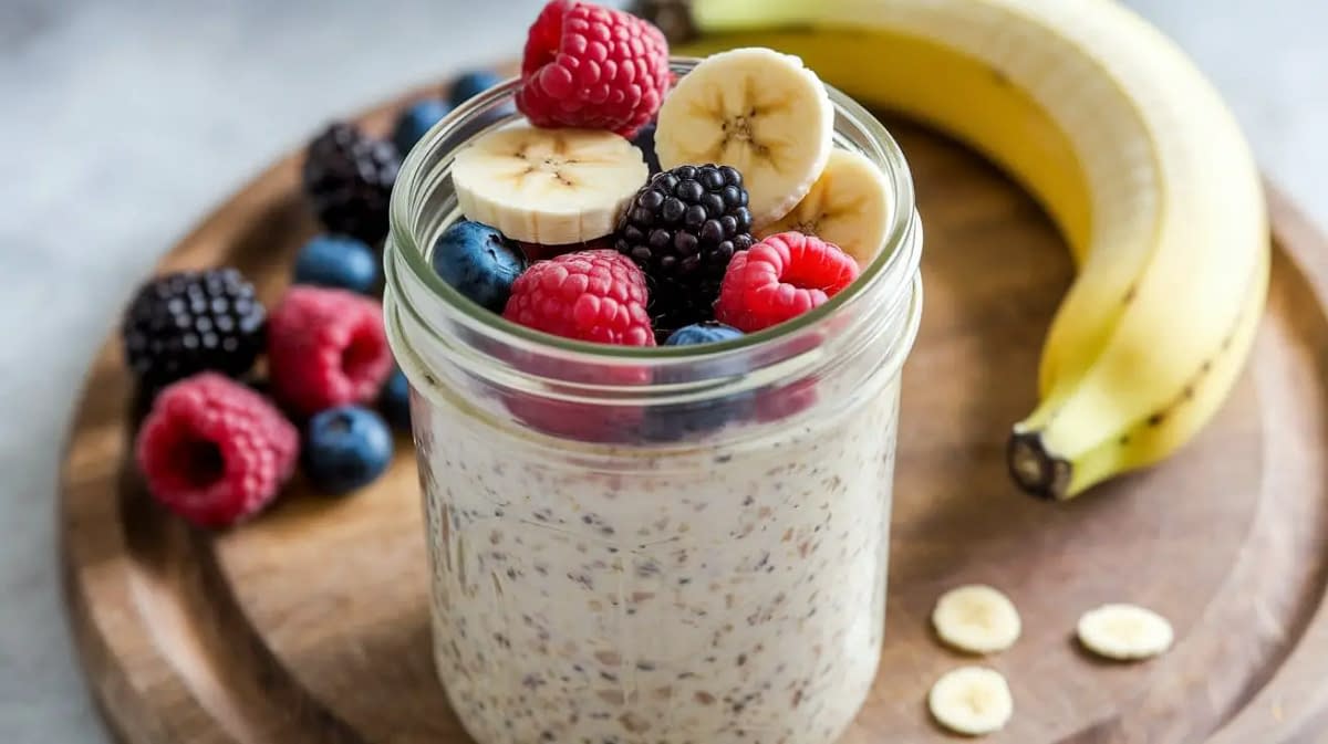 Gently fold in the mixed berries and sliced banana into the oat mixture. These superfoods not only add vibrant colors but also infuse the oats with natural sweetness and antioxidants.