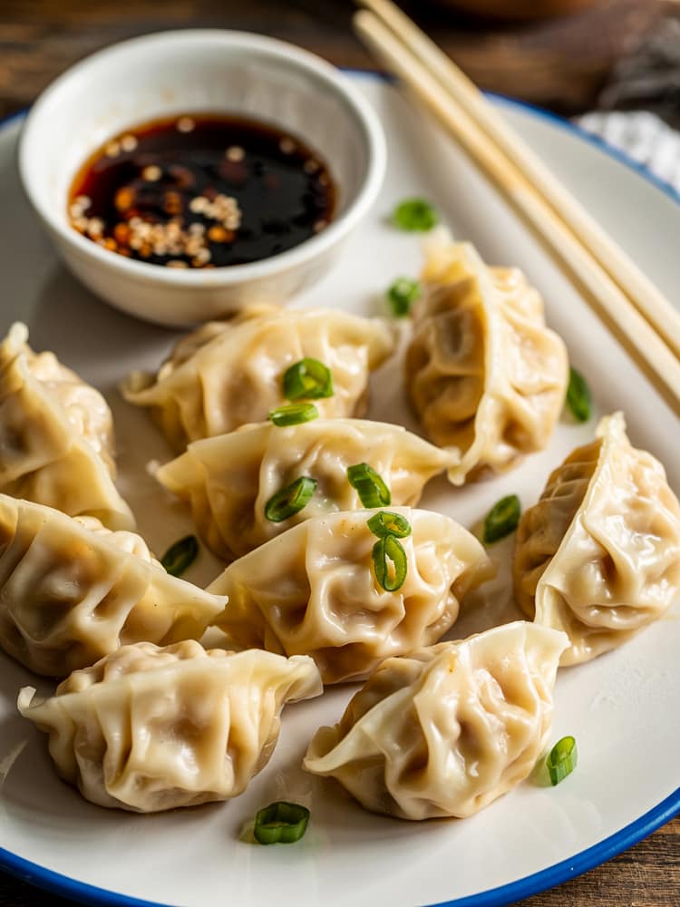 Transfer dumplings to a serving plate. Garnish with sesame seeds or extra chopped green onions if desired. Serve hot with dipping sauce.