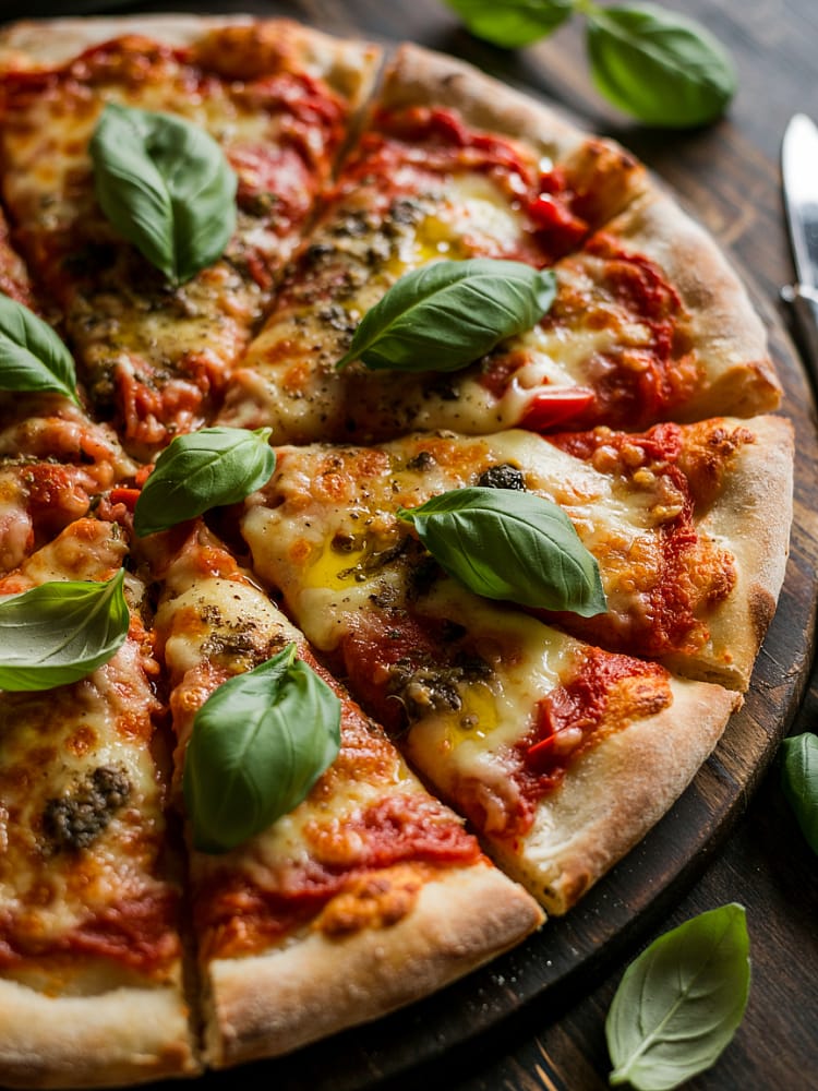Once your pizza dough is shaped and your oven is preheated, it’s time to add your favorite toppings! Spread a thin layer of sauce, sprinkle cheese, and add your favorite toppings like pepperoni, veggies, or fresh basil. Bake the pizza for about 10–12 minutes or until the crust is golden brown and the cheese is bubbling and slightly browned.