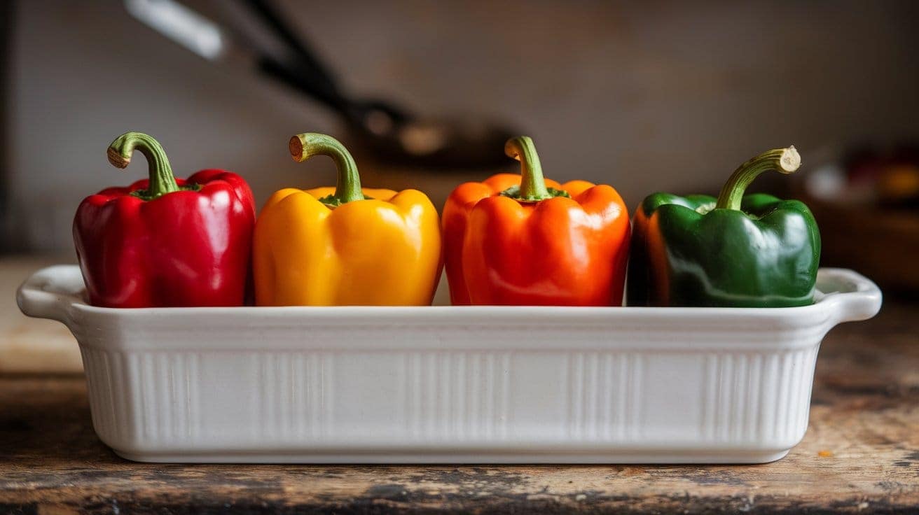 - Choosing Peppers: Select bell peppers with flat bottoms so they stand upright easily.
