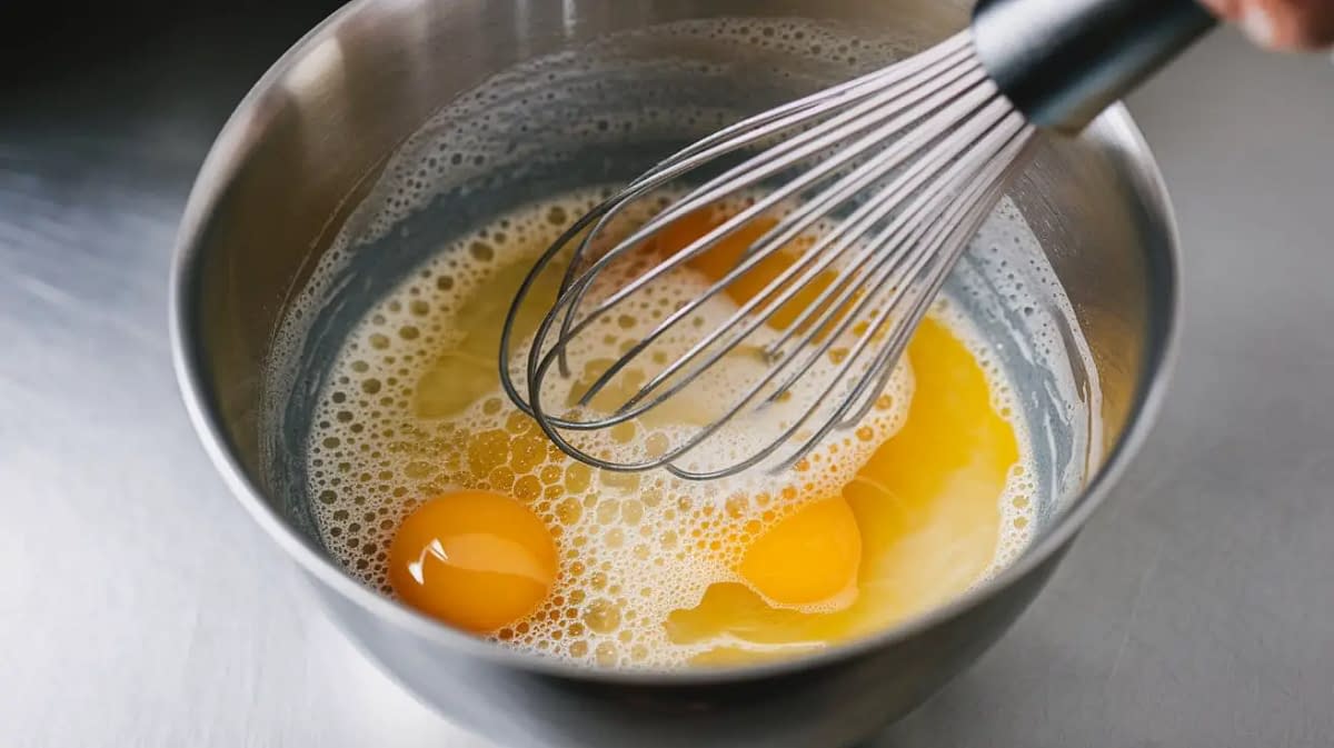In a large bowl, whisk together the eggs and milk until well combined and slightly frothy.