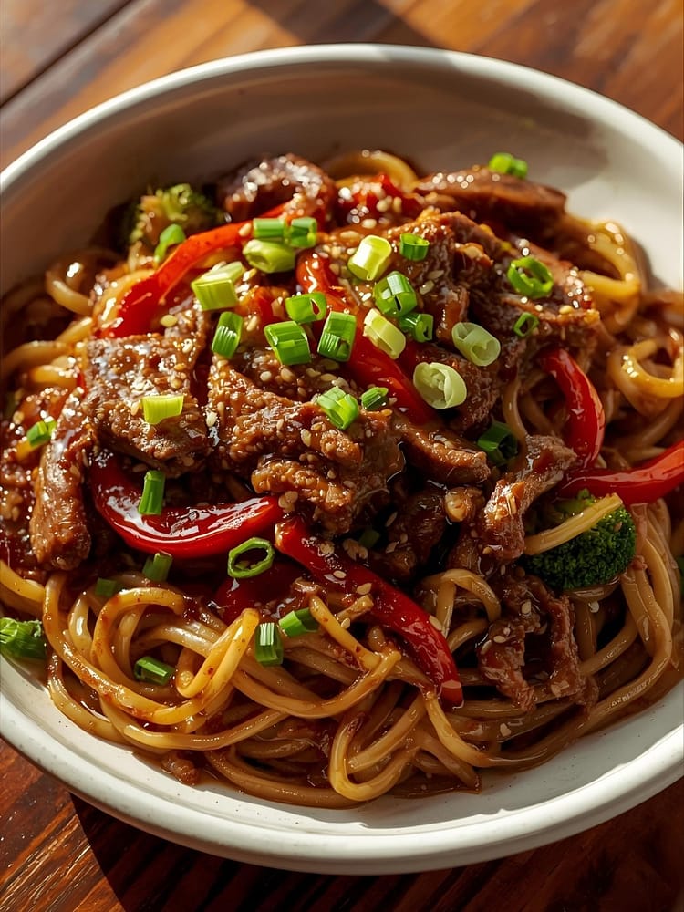 Indulge in the deep, satisfying flavors of this Savory Noodles with Mongolian Beef — a classic Chinese-inspired favorite. Tender strips of beef are cooked to perfection in a rich, garlicky soy-based sauce, then tossed with chewy noodles and crisp vegetables for a comforting, flavor-packed meal. Perfect for dinner nights when you crave something hearty, aromatic, and easy to prepare — all made with simple ingredients and no alcohol-based sauces.