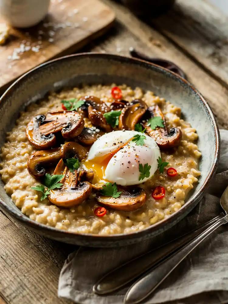 Savory oats with garlic mushrooms & poached egg is more than just a healthy breakfast—it’s an adaptable, soul-warming meal that works for any time of day. It’s proof that comfort food can be nourishing, simple, and elegant at the same time.