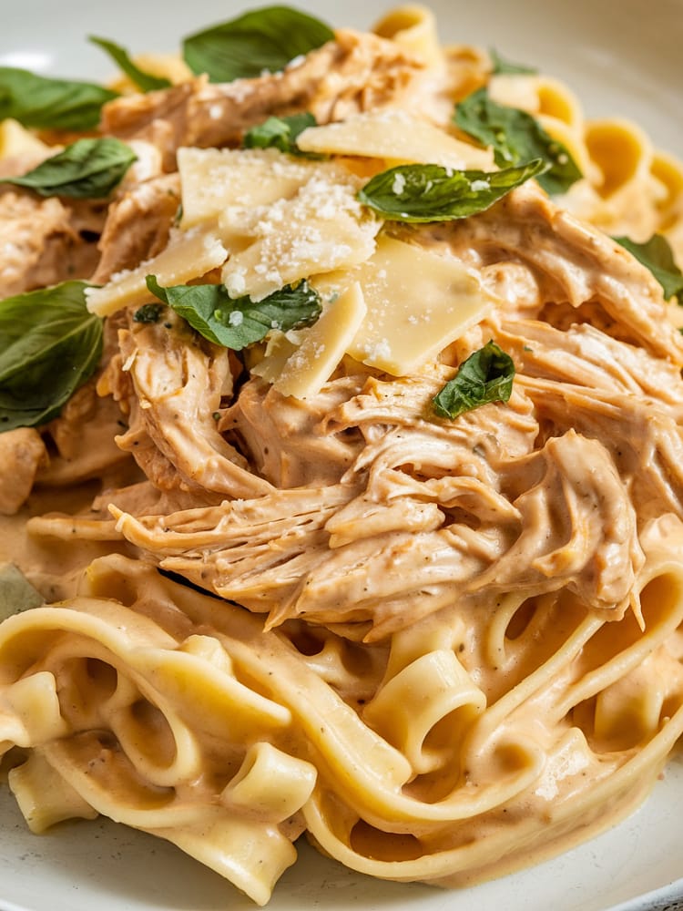 Spoon the creamy chicken Alfredo over individual plates and garnish with fresh parsley, a sprinkle of extra parmesan, or even red pepper flakes for a little heat. Serve with a side of garlic bread or a simple green salad for a complete meal.