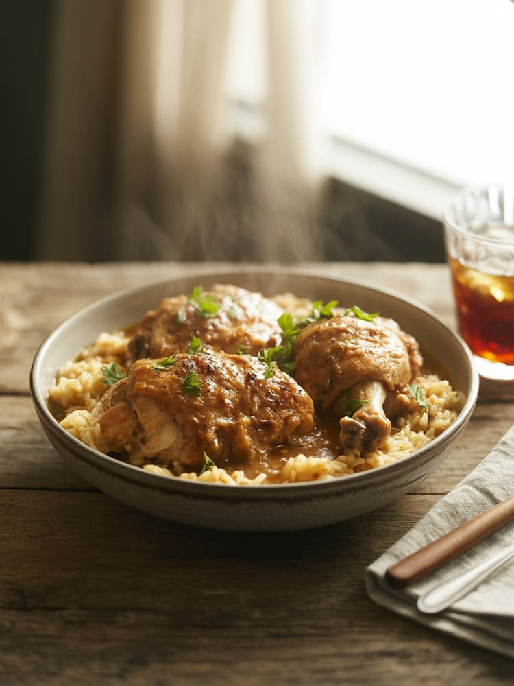 Smothered Chicken and Rice is a comforting Southern-inspired dish made with tender chicken thighs simmered in a rich, savory onion gravy and served over fluffy rice. This one-pan meal is packed with flavor and perfect for weeknight dinners or cozy family gatherings. It’s a hearty, budget-friendly classic that never fails to satisfy.