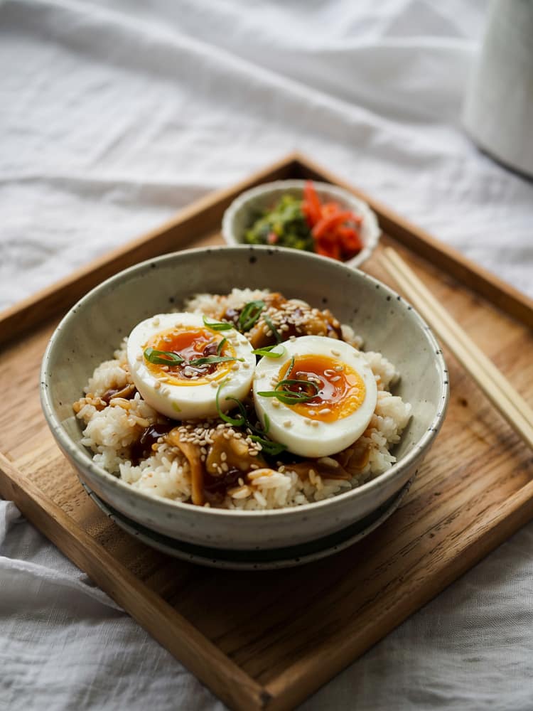 Perfectly soft-boiled eggs meet fluffy steamed rice, nutty sesame oil, and optional toppings like scallions, nori, soy sauce, or crispy garlic. Whether you’re preparing a quick breakfast, a light lunch, or a wholesome dinner, this rice bowl adapts to your mood and pantry. It’s one of those minimalist dishes that feels like a hug in a bowl—deeply flavorful, yet effortless to put together.